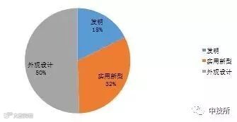 1、国内涉诉专利多数为外观设计及实用新型专利, 涉诉专利的技术创新程度较低,高科技类技术较少;