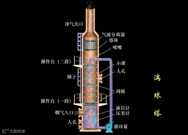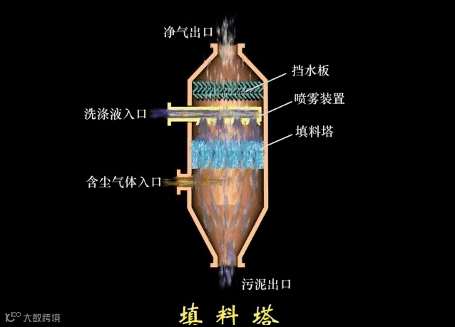 重力喷雾湿式除尘器,如喷淋洗涤塔。