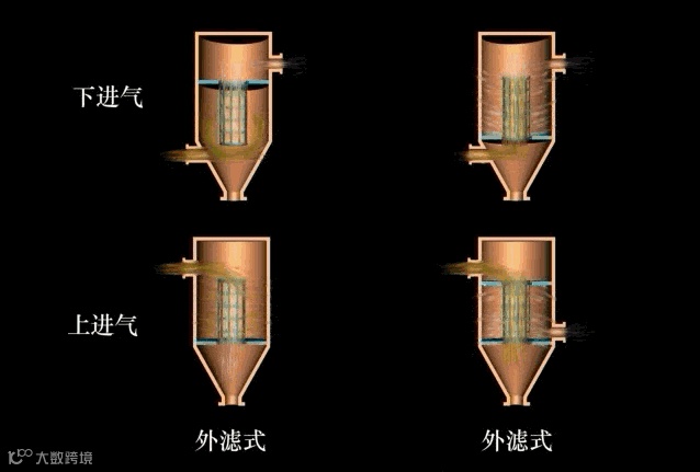 袋式除尘器的形式、种类很多,按清灰方式可以分为机械清灰、逆气流清灰、脉冲喷吹清灰三类;按过滤方式可以分为内过滤式和外过滤式两类;按进出口的位置不同可分为下进风和上进风两类。