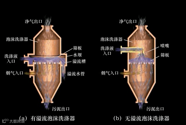 泡沫式湿式除尘器,如泡沫除尘器、旋流式除尘器漏板塔。