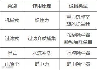 按电极清灰方式不同分为干式电除尘、湿式电除尘、雾状粒子捕集器和半湿式电除尘器等。