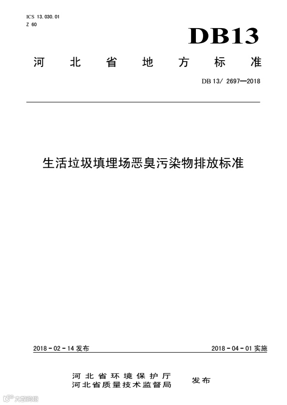 近日,河北省出台了《生活垃圾填埋场恶臭污染物排放标准》、《医疗废物焚烧污染控制标准》两项地方标准,并将于4月1日起正式实施。