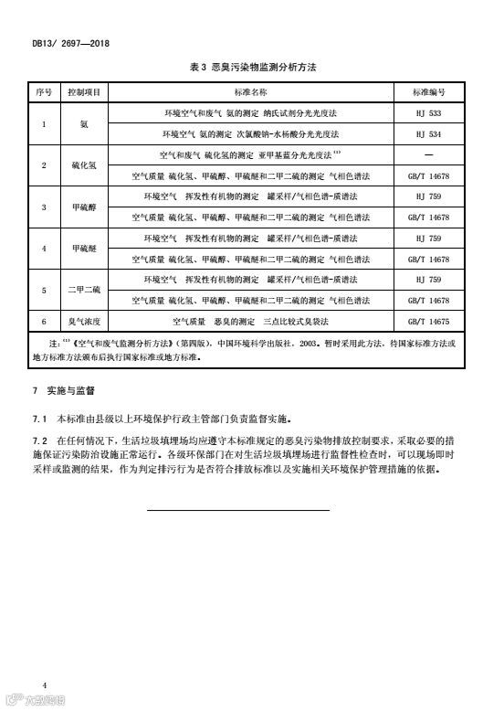 对生活垃圾填埋场排放的恶臭气体中6种主要污染因子浓度和医疗废物焚烧设施排放的13种主要污染因子浓度做出了严格的限定,并针对生活垃圾填埋场恶臭气体中存在的6种主要污染因子和医疗废物焚烧设施排放的19种主要污染因子给出了具体的监测分析方法。两标准的出台使全省各地对两类气体污染源的监管有了可操作性较强的规范化、统一化标准。
