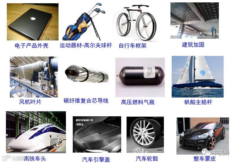碳纤维复合材料比重不到钢的1/4,抗拉强度一般都在3500MPa以上,是钢的7-9倍,抗拉弹性模量为230-430GPa亦高于钢。目前在航空领域的应用有美国联合攻击战斗机进气道、美国“鱼鹰”旋翼机V22后机身、波音737机头部分、太阳能飞机等。此外,在民用发面也获得广泛应用。如电子产品外壳、运动器材-高尔夫球杆、自行车框架、建筑加固汽车引擎盖、汽车轮毂 整车蒙皮、高铁车头、碳纤维复合芯导线、帆船主桅杆、风机叶片等。