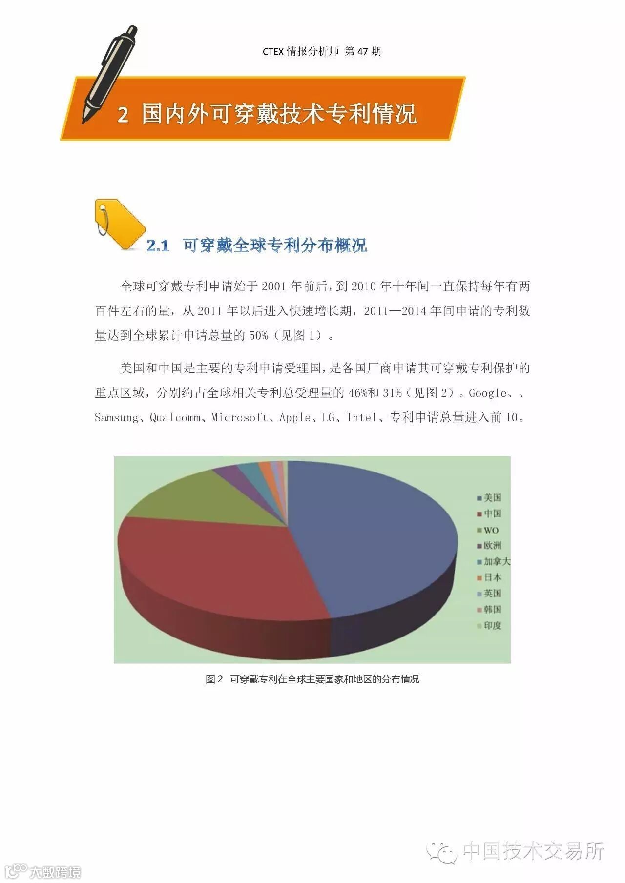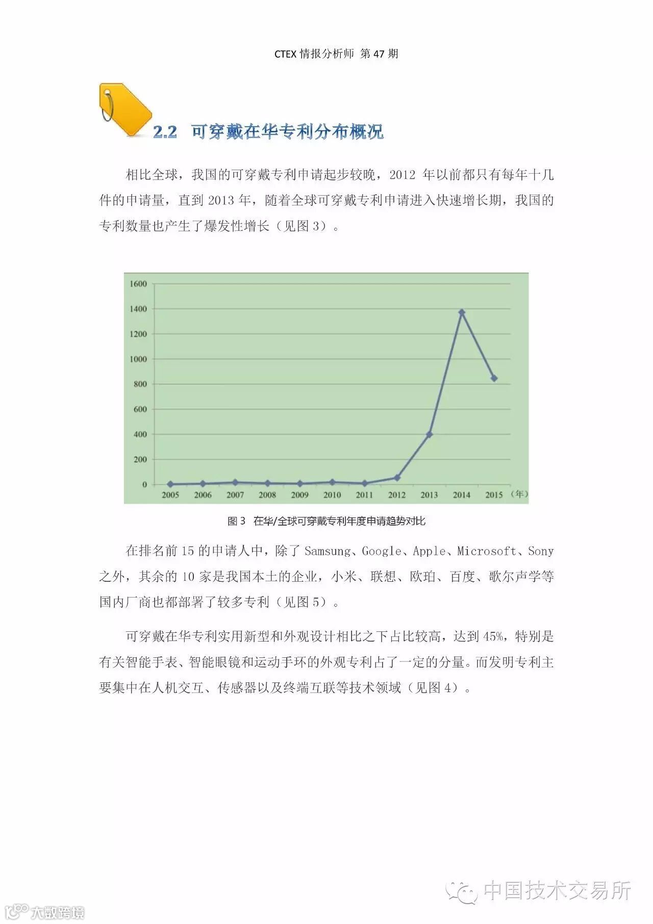 全球可穿戴行业蓬勃发展,可穿戴领域成为研发热点,相关专利布局早已展开。本文对全球可穿戴设备领域的专利申请进行了针对性的检索,并从重点产品、核心技术、主要申请人等角度进行了全方位的深入分析,也展示了部分重点专利,可为国内相关企业的技术研发和市场布局提供借鉴。