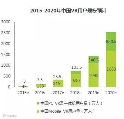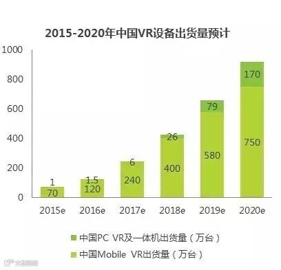 艾瑞咨询发布《2016年中国虚拟现实(VR)行业研究报告》,根据艾瑞初步测算,预计2020年VR设备出货量820万台 用户量超过2500万人。PC VR及一体机在2019年左右会有跨越式发展,实现用户量的飞跃。