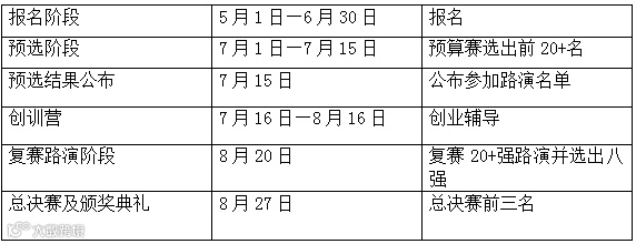 (1)5月1日起到6月30日报名截止时间,所有自主报名或通过其他渠道推荐提交报名所需材料,大赛组委会在7月1日—7月15日内进行海选,专家组会分析评议各个参赛者的创新产品,并对创新技术专利进行全方位综合分析,给与创新创业者一定的专利保护、价值评估和转化等全方位指导,更好的保护自己的成果;同时IPRdaily专家组会给入围的每个项目做一份技术专利分析报告,作为进入复赛的入场券;经过复赛后选出前8强进行决赛并及时向项目负责人通知结果(以短信、电话或邮件方式)。