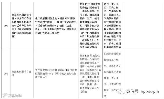 生产放射性同位素的(制备PET用放射性药物的除外);使用I类放射源的(医疗使用的除外);销售(含建造)、使用I类射线装置的;甲级非密封放射性物质工作场所 |