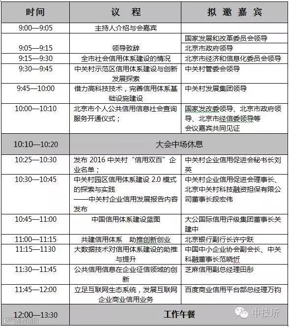 为深入贯彻落实《国务院关于印发社会信用体系建设规划纲要(2014—2020年)的通知》及中关村管委会、中国人民银行营管部、北京市经信委等单位《关于进一步加强中关村国家自主创新示范区信用体系建设的意见》精神,更好地优化中关村的信用环境,构建国内信用高地,及时反映北京市社会信用体系建设取得的成果,向社会传达未来北京社会信用体系建设的工作方向等,在北京市经济和信息化委员会、中国人民银行营业管理部、中关村科技园区管理委员会、海淀区人民政府及中关村发展集团股份有限公司等单位的大力支持下,中关村企业信用促进会(以下简称信促会)联合北京市中小企业公共服务平台等相关单位,将于2016年11月30日在中关村国家自主创新示范区展示中心举办“2016信用北京暨(第二届)信用中关村高峰论坛”。