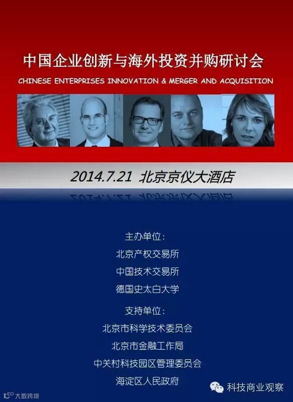 北京产权交易所、中国技术交易所及德国史太白大学于2014年7月21日(周一)9:00—16:30,在北京京仪大酒店二层多功能厅联合举办“中国企业创新与海外投资并购研讨会”。