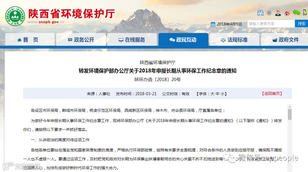 附件:1.环保部关于2018年申报长期从事环保工作纪念章的通知