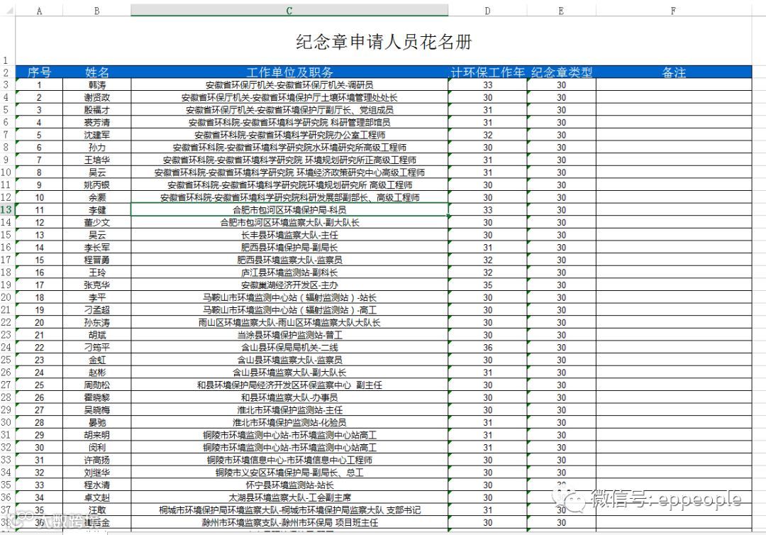 我省环保系统申领长期从事环保工作纪念章人员名单的公示