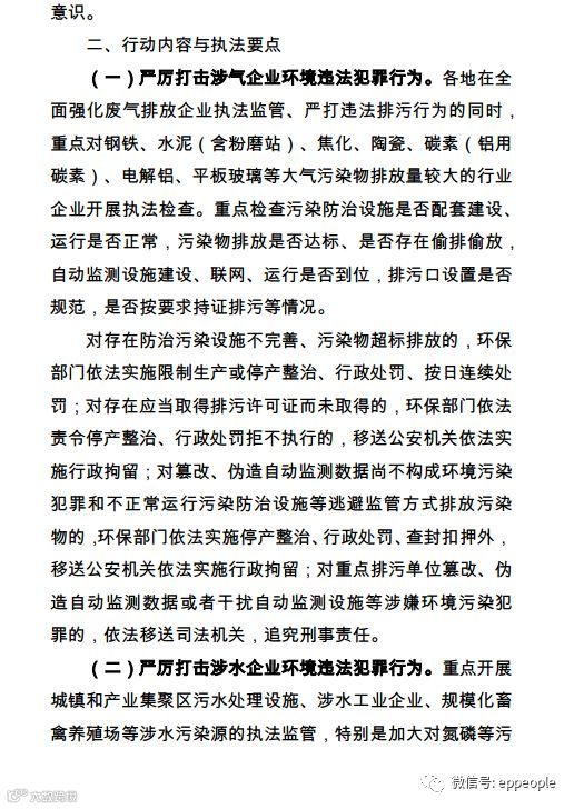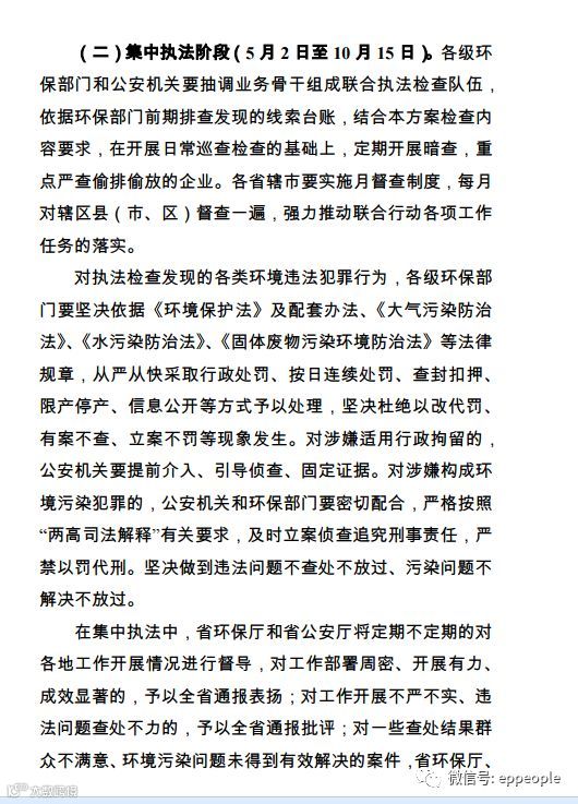 各地要聚焦环境污染防治中心工作,密织监察网格,集中开展重点行业、重点地区、重要时段环境违法行为排查,排查一批环境违法行为,按照新《环境保护法》《大气污染防治法》《水污染防治法》及四个配套办法等法律规定,及时采取行政处罚、按日连续处罚、查封扣押、限产停产、移送行政拘留、移交涉嫌环境污染犯罪案件等方式予以处理,坚决杜绝以改代罚、有案不查、立案不处等现象发生。对涉嫌适用行政拘留和构成环境污染犯罪的,要按照省环保厅和公安厅联合下发的《全省持续打击环境违法犯罪行为联合行动方案》(豫环文〔2018〕48号)要求执行,及时移交案件线索及调查取证材料,严禁以罚代刑,做到违法问题不查处不放过、污染问题不解决不放过。