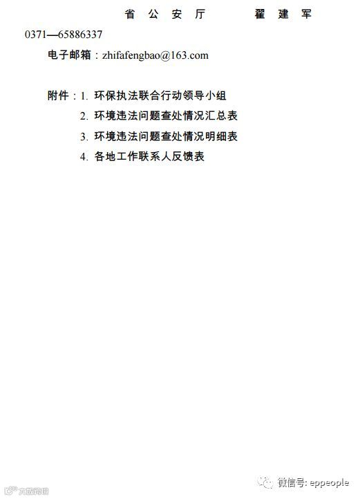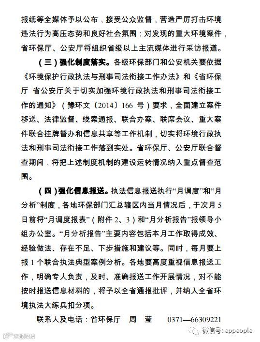 联 系 人:周 莹联系电话:0371-66309221(传真)电子邮箱:zhifafengbao@163.com附件 环境违法行为查处情况调度表.docx 2018年4月28日主办:省环境监察总队 督办:省环境监察总队河南省环境保护厅办公室 2018年4月28日印发