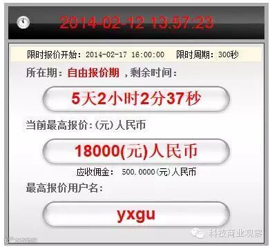 限时周期:自由报价期结束后会自动进入“限时周期”,例如:限时周期为300秒,说明以300秒作为一个周期,300秒内只要有人出价,将重回300秒倒计时,直至300秒内无人出价,标的成交!