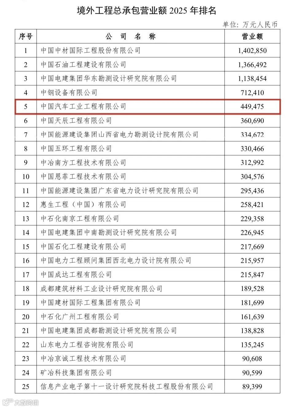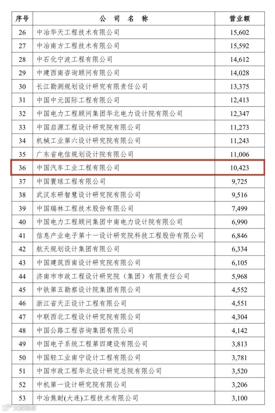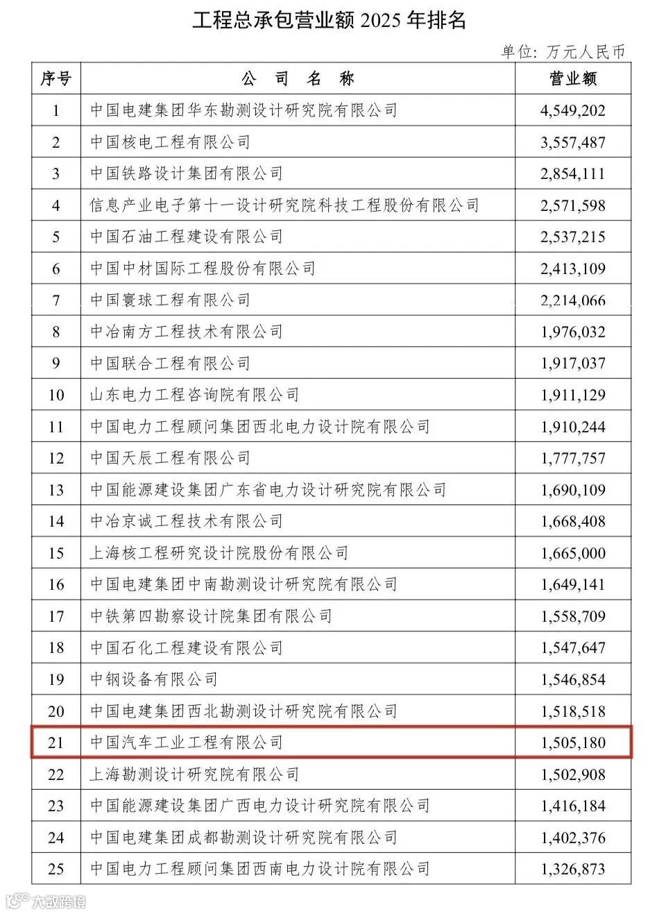 近日,中国勘察设计协会公布了勘察设计企业工程项目管理和工程总承包营业额2025年排名,该排名涵盖了化工、机械、交通、电力、市政等行业,中汽工程凭借着出色的业绩和雄厚的实力,再次蝉联榜单。