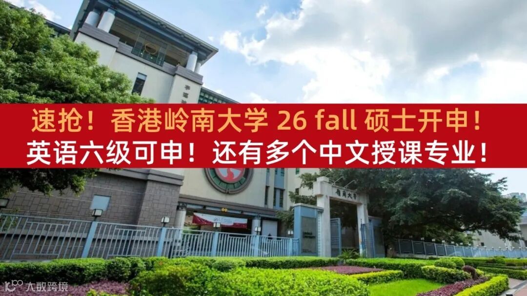香港岭南大学在国庆假期开放了 26 fall 授课型硕士申请。目前大部分专业的网申通道已经开启,文学院和个别专业要等到11月1日。其中有一些硕士项目是中文授课,对英语能力较为薄弱的申请者而言,是能减轻一定语言压力的。