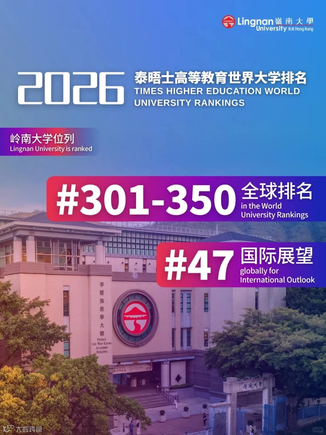 岭南大学作为香港八大高校之一,近年来在国际学术评价中表现突出。2026 年《泰晤士高等教育世界大学排名》首次进入全球第 301‑350 名区间,且在“国际视野”指标上位列全球第 47 位。与此同时,2025 年《泰晤士高等教育世界大学影响力排名》显示,岭大在联合国可持续发展目标(SDG 4:优质教育)中荣登全球第一,成为首家在该榜单夺冠的香港高校。