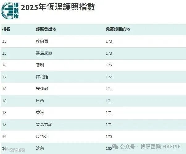 亨利护照指数 2025 年 5 月更新:香港特区护照排名全球第17,亚洲前三(仅次于日本、新加坡)。