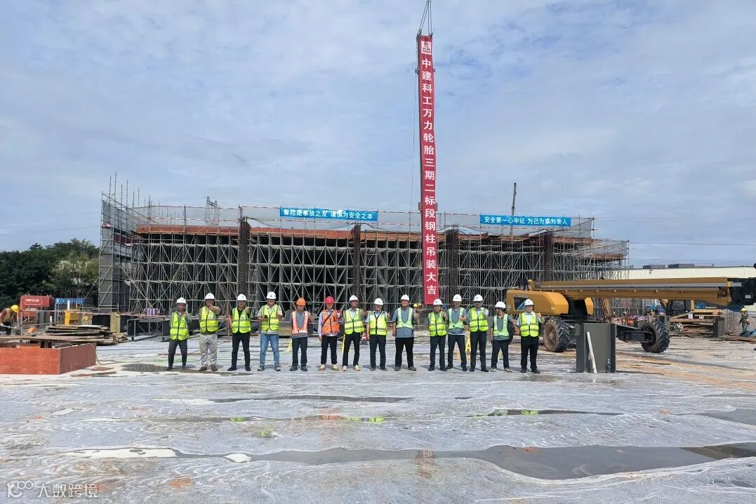 万力轮胎项目建设工期紧、任务重,对团队的执行力和协作能力提出了极高要求。项目团队加班加点抓质量、赶进度,既保障施工质量,又推进工程进度。近日,1#自动物流成品库第二节钢柱吊装已圆满完成。