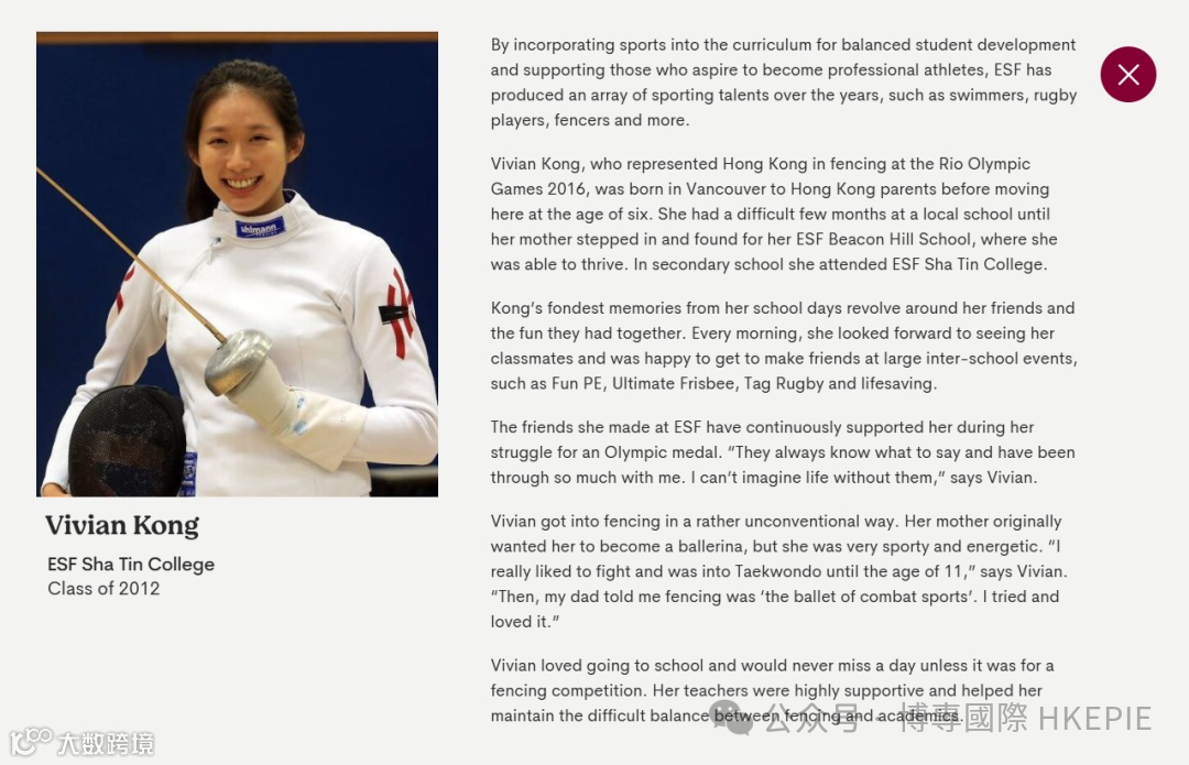 江旻憓曾在英基沙田学院修读 IB 课程,最终考获高达 41分 (满分45 分),被斯坦福大学录取。