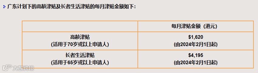 根据港府推行的《广东计划》和《福建计划》,持香港身份的长者 在广东或福建养老,可在无须每年回港的情况下,享受长者生活津 贴。