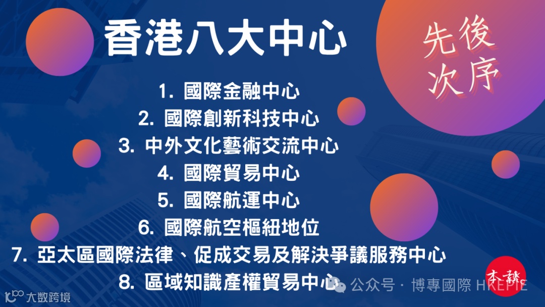 再加上,香港要建设发展 “八大中心” ,为许多想要赴港开拓市场的新兴产业公司提供了机遇。
