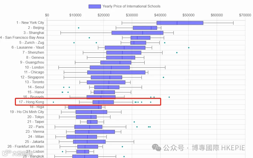 香港的国际学校不仅平均收费低于内地一线城市,而且在亚洲地区也仅排在第 17 位,落后于新加坡。这充分证明了香港国际学校在提供优质教育的同时,也具备极高的性价比。