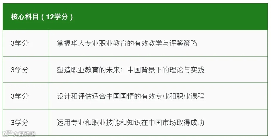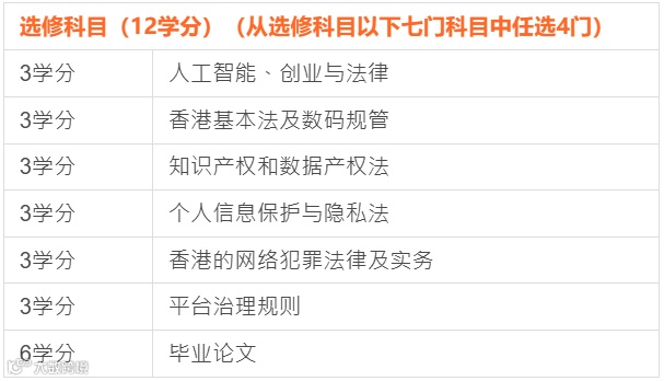 本课程由8个科目组成,包括4个核心科目和4个选修科目(每科3个学分)。