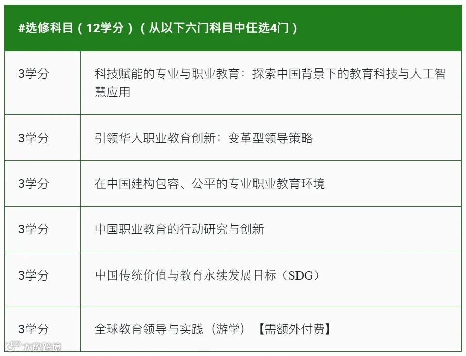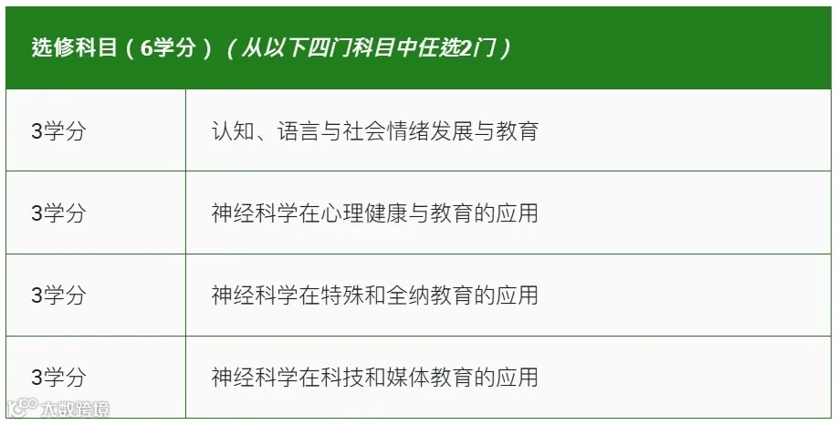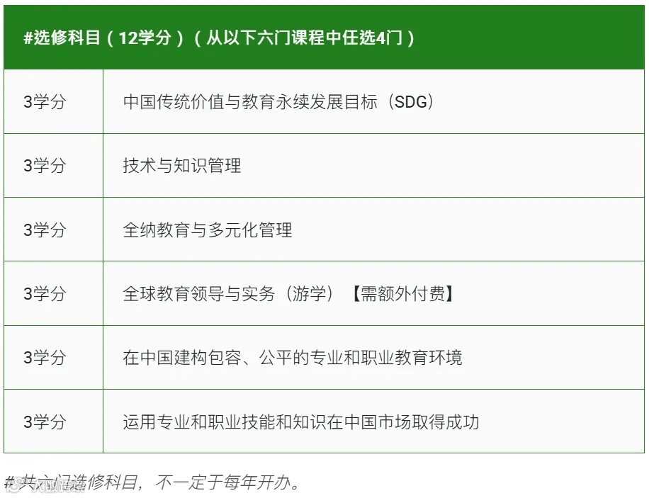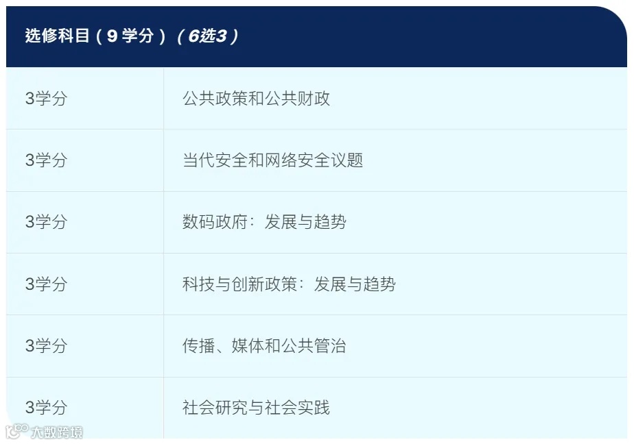 本课程由8个科目组成,包括4个核心科目和4个选修科目(每科3个学分)。