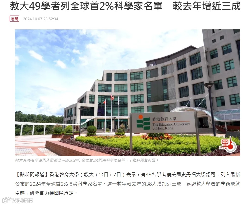 49名学者获美国史丹福大学认可,列入2024年全球首2%顶尖科学家名单;