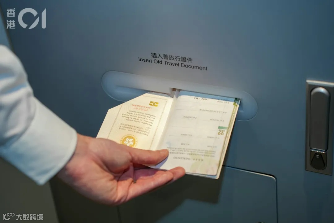 7. 揭开旧特区护照(如有)最后一页,放进下方旧护照卡槽,会自动进行剪角注销。