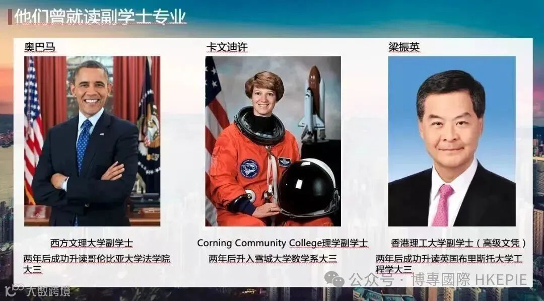 美国前总统奥巴马、前香港特首梁振英等也是通过副学士实行向上升级的。