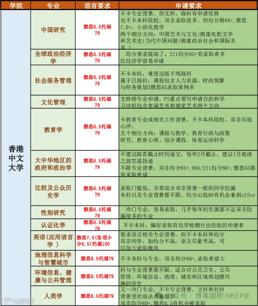 全球中国研究:课程内容涵盖经济、文化、社会等多个方面。录取双非院校学生较多,雅思7.0或以上可大幅提高成功率。