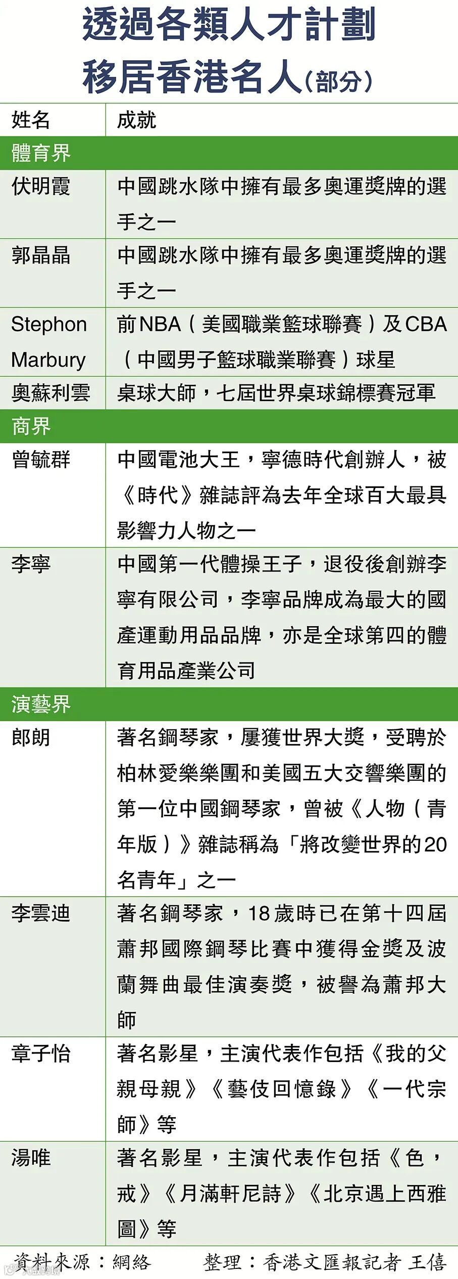 且历年来,也有不少名人选择通过优才计划成为香港居民: