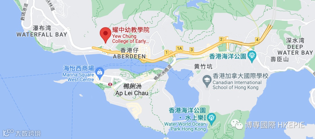 香港耀中幼教学院所在的地理位置极佳。学院在在香港岛南区,毗邻风景秀丽的著名旅游景点 — 香港海洋公园,北部临近香港最高学府-香港大学。
