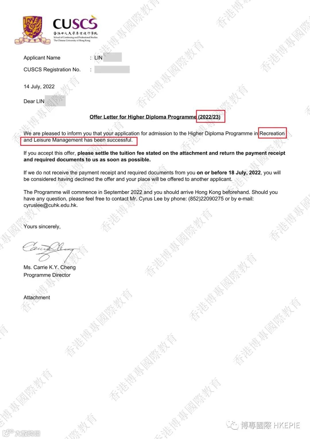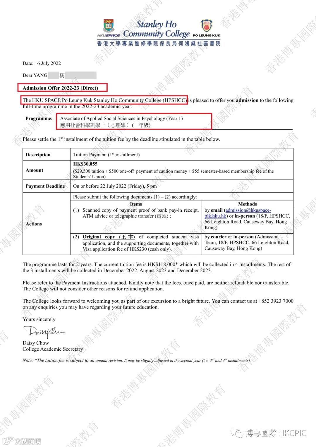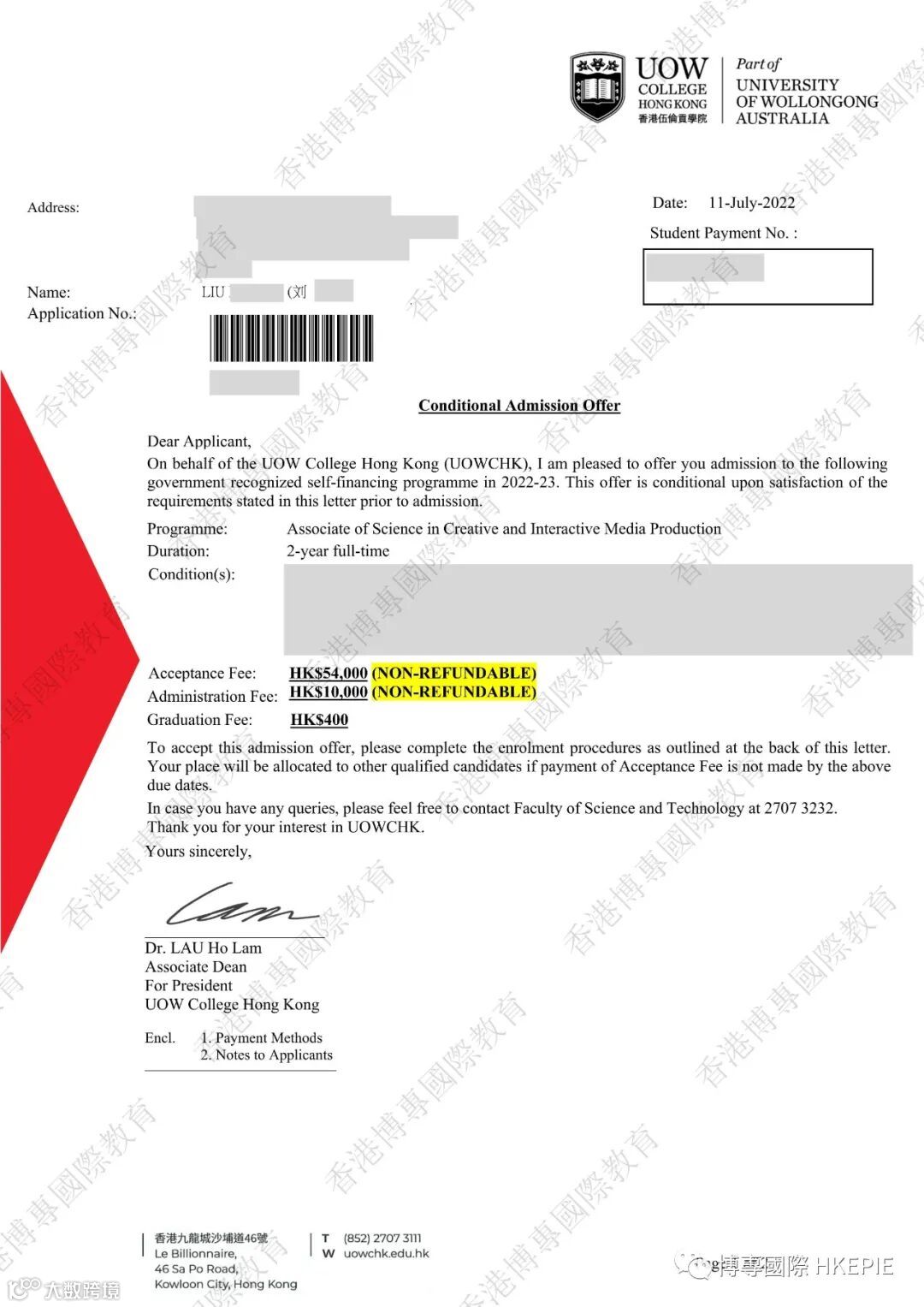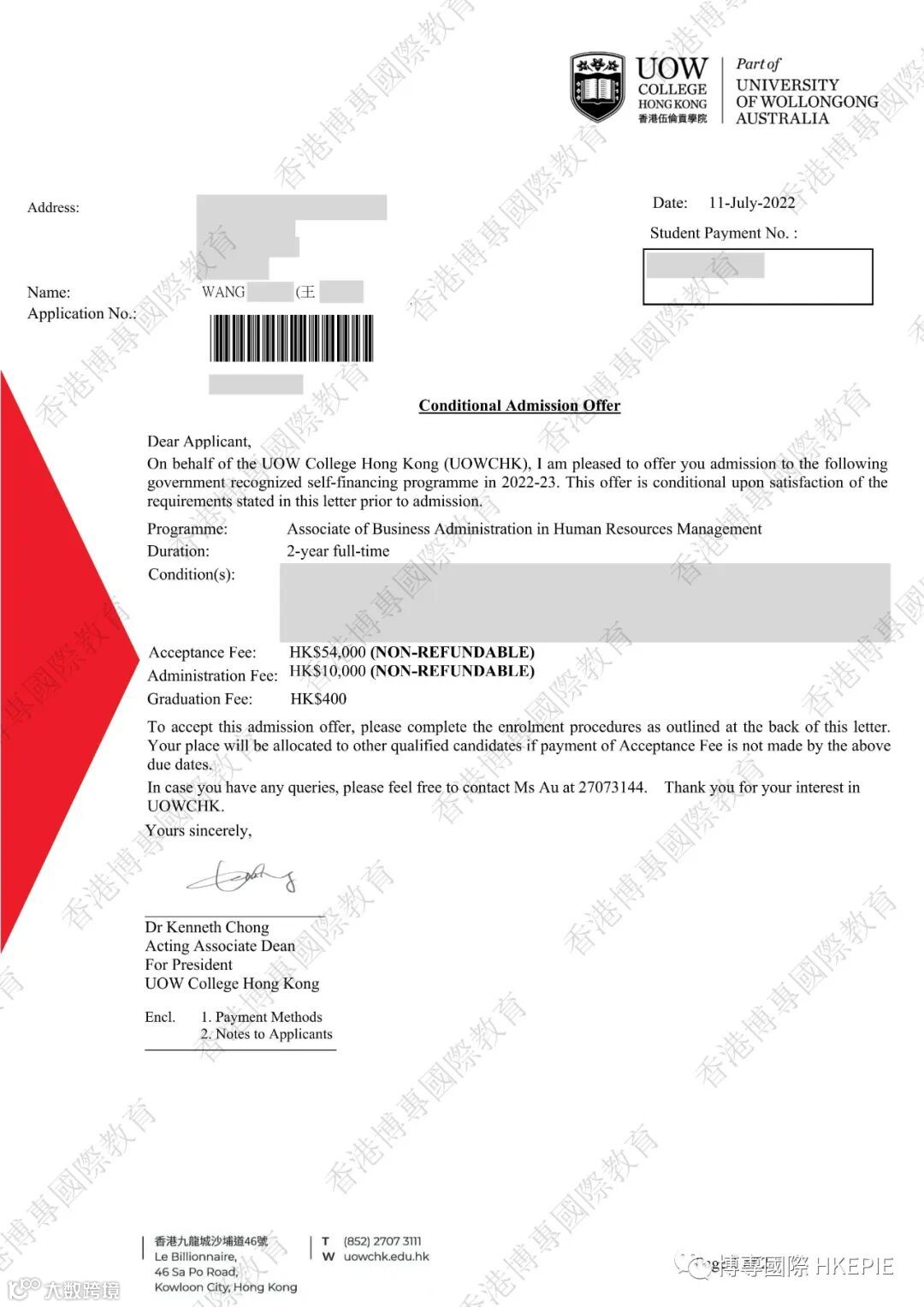 部分副学士录取Offer展示