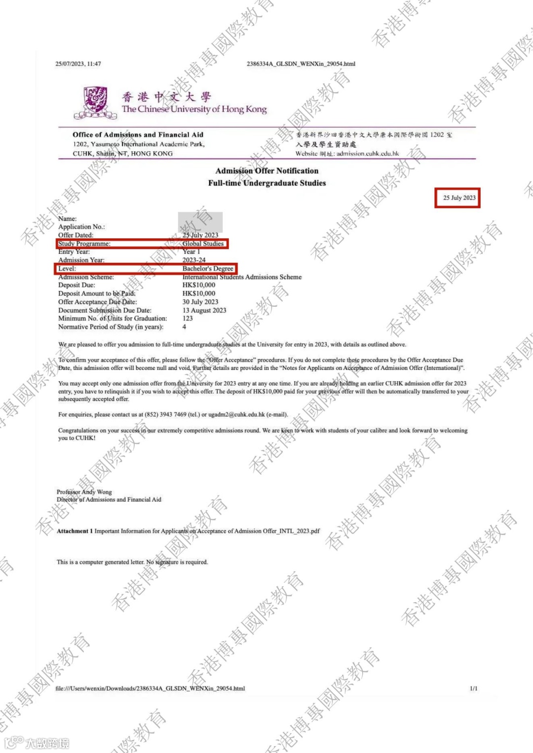 部分副学士升本录取Offer展示