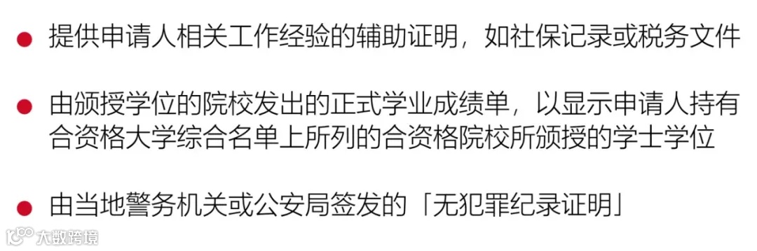 5、基本学历:申请人必须具备良好学历,一般要求为具备由认可大学或高等教育院校颁授的大学学位。