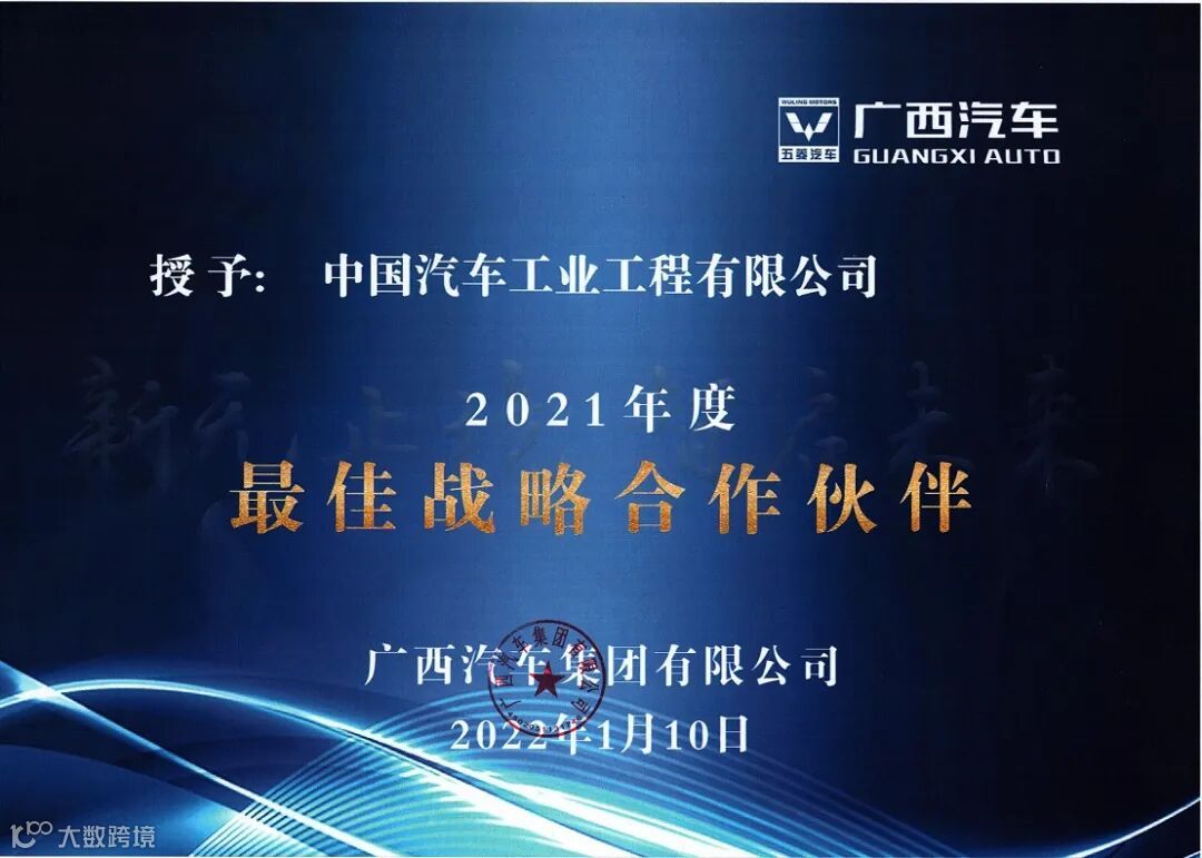 由中汽工程承建的广西汽车集团专用车迁建项目暨新能源汽车基地进入正式生产阶段,项目取得的成效得到了客户的充分认可,为此广西汽车集团授予中汽工程“2021年度最佳战略合作伙伴”奖并发出感谢信,对中汽工程项目团队在本项目中展现的设计制造能力、项目管理水平和敬业精神给予了高度赞扬。