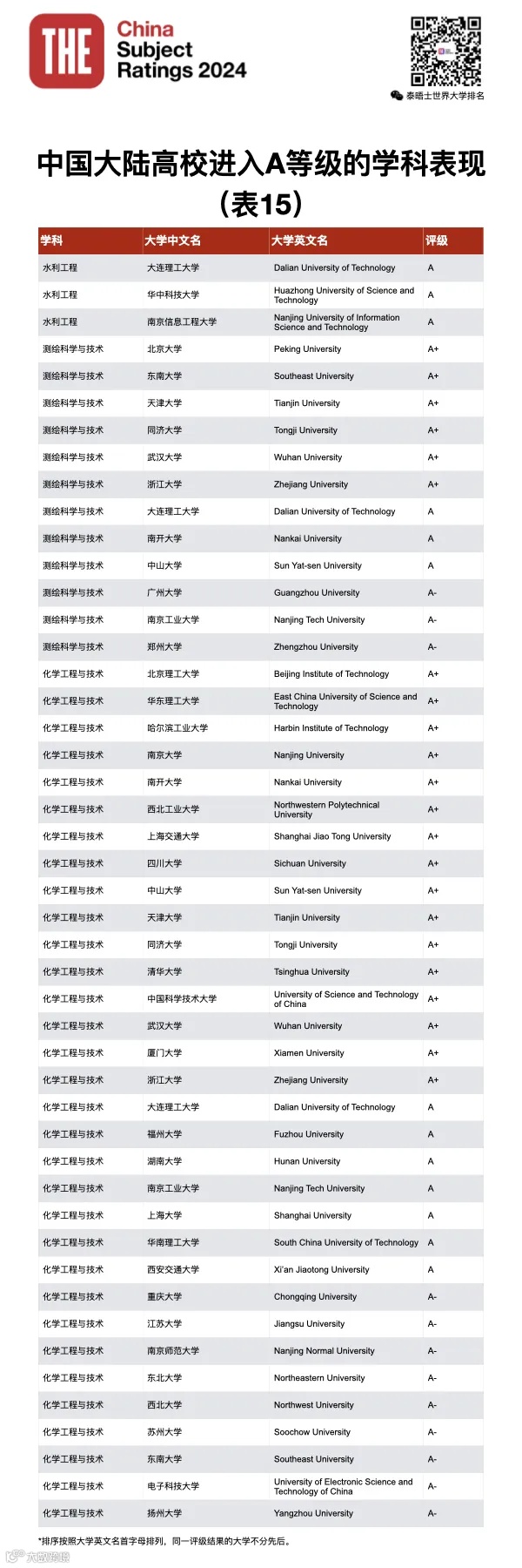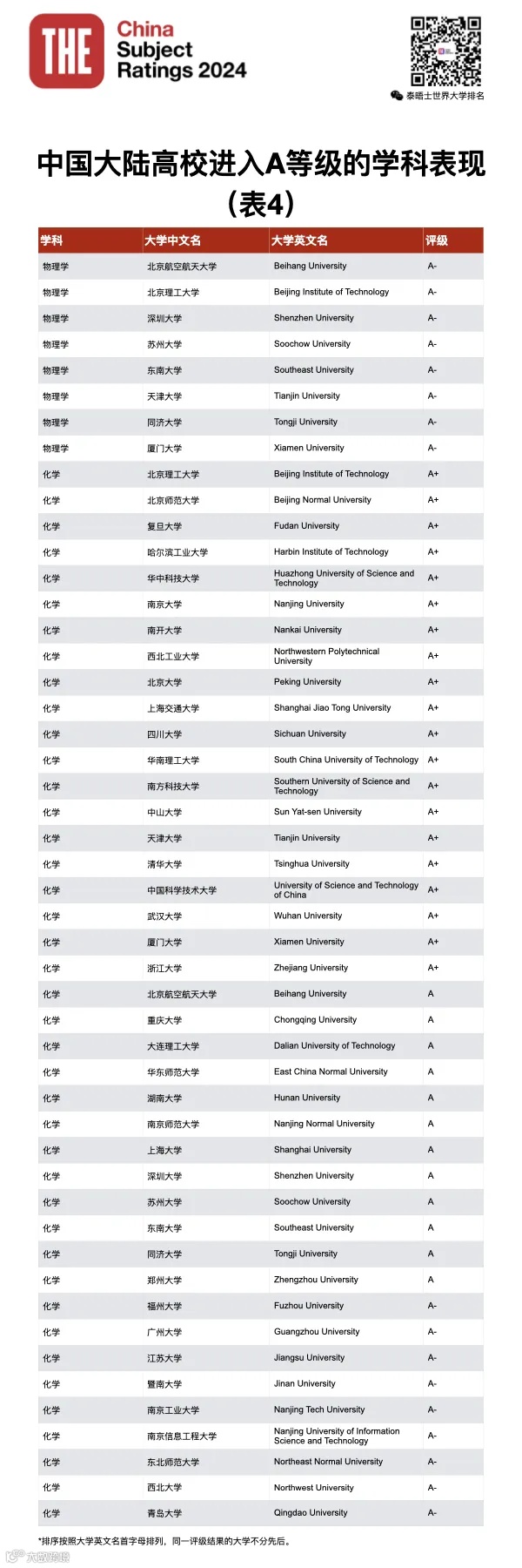 该评级是唯一一个根据中国教育部的学科分类体系进行评估的榜单,将中国高校与全球其他地区的高校进行学科层面上的比较。