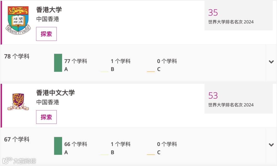 必须符合与2024年度泰晤士高等教育世界大学排名相关的学科大类排名门槛