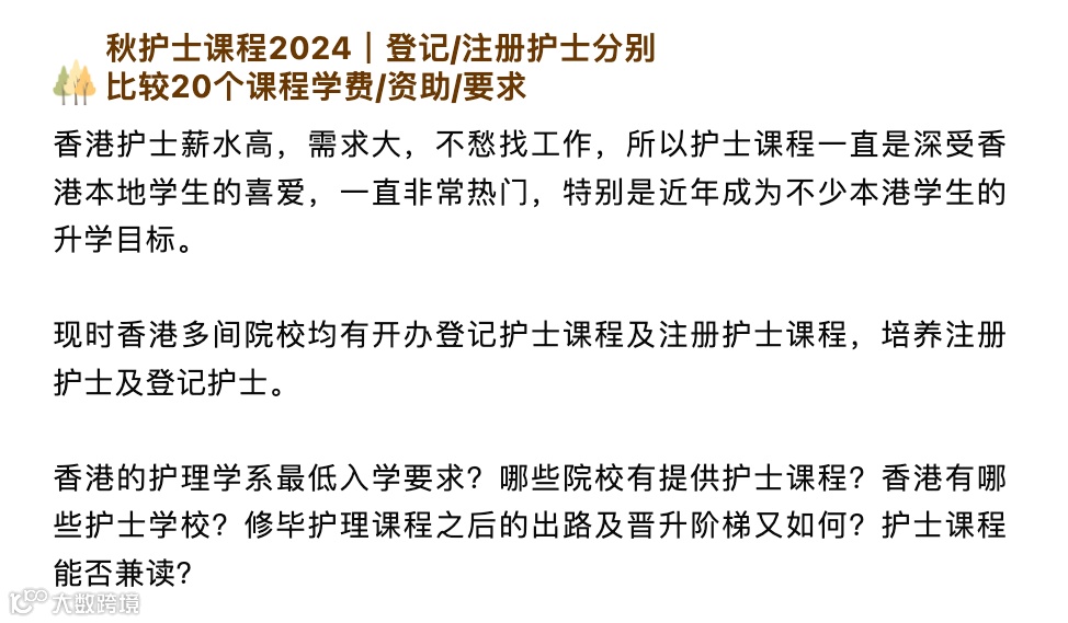 香港2024护士课程汇总