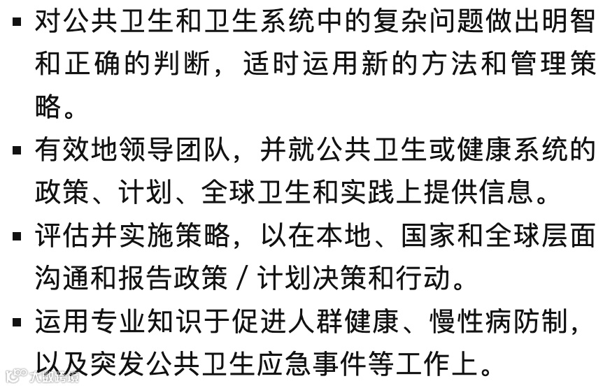 申请人须具备健康科学或相关领域的硕士学位,并至少三年于公共卫生或医疗保健服务相关的全职经验。