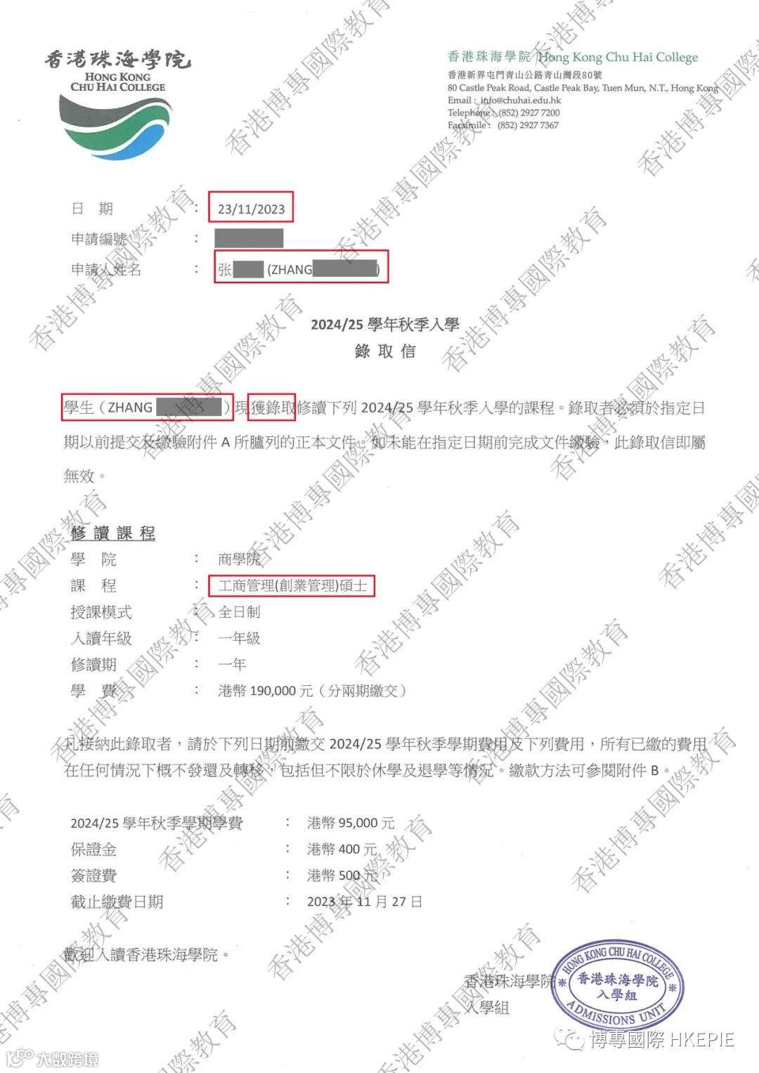 获香港🇭🇰珠海学院·工商管理硕士