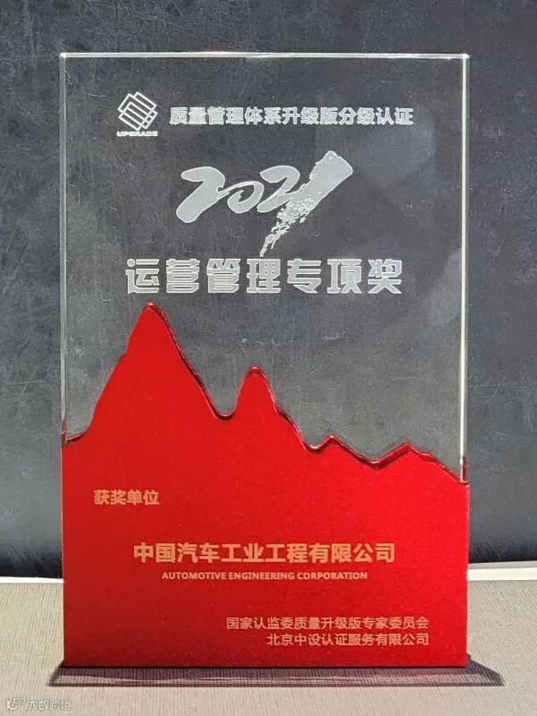 此次大会,结合开展质量管理升级认证以来各认证单位的审核及综合业绩情况,评选出10家勘察设计企业分获行业质量管理升级版认证年度创新引领奖(四类)及最佳实践奖。中汽工程获得运营管理专项奖,中汽工程副总经理许志军代表中汽工程上台领奖。