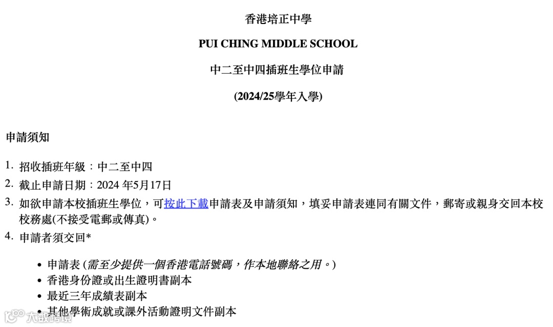 目前正开放中二~中四插班,