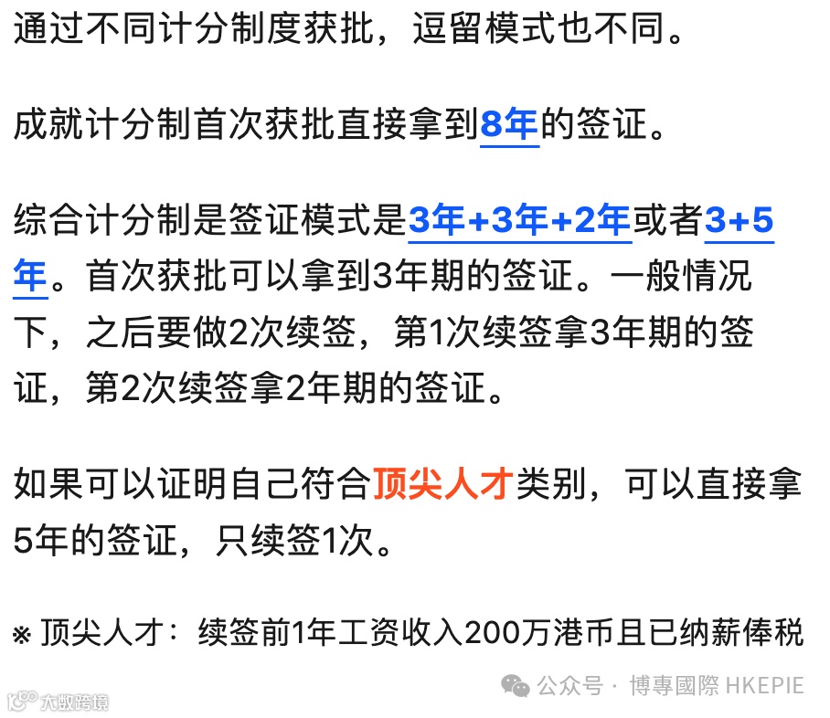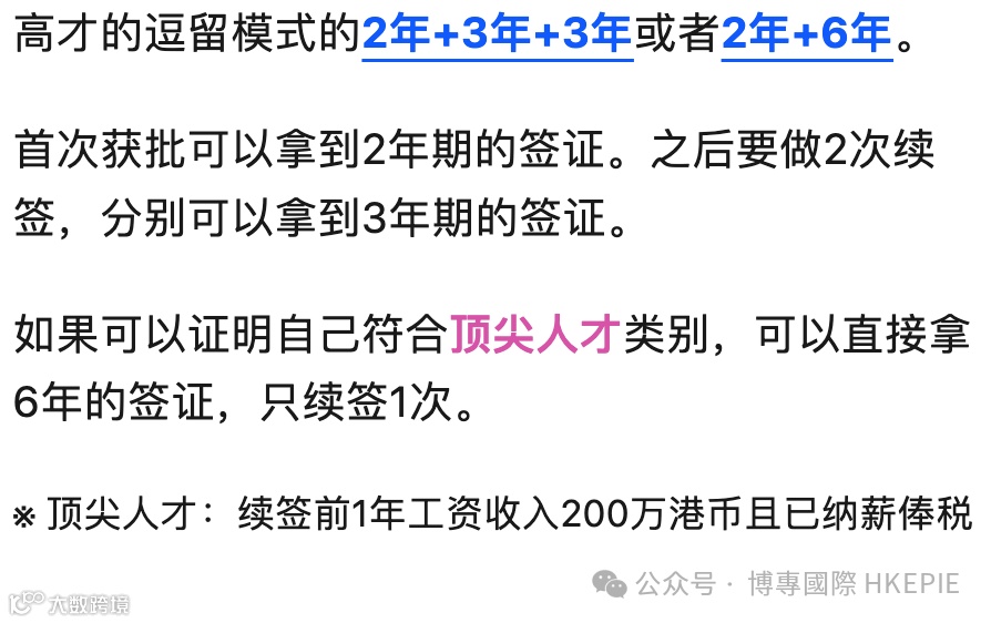※ 顶尖人才:续签前1年工资收入200万港币且已纳薪俸税