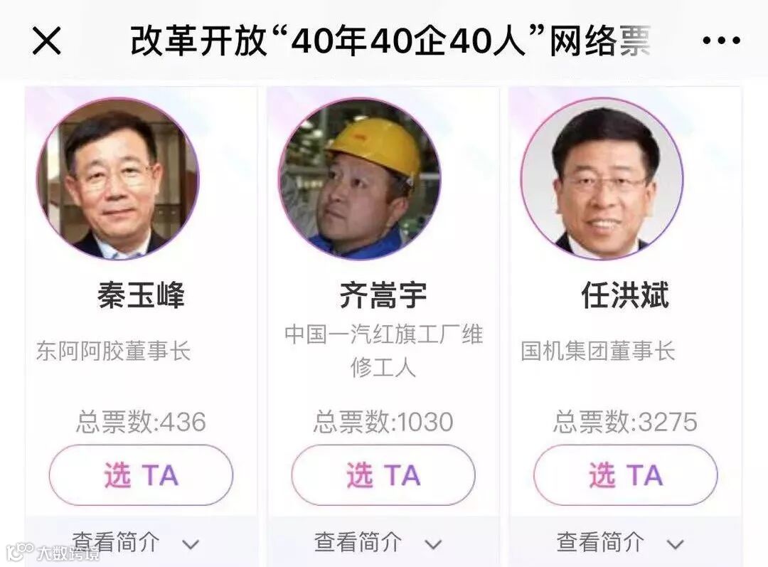 据悉,为保证征集报道对象的代表性、群众性,本次活动发起方通过多种渠道征集了100位候选人(按姓氏拼音排序)。这些人都是改革开放至今,曾经或正在对国企改革、发展、创新、开放事业带来重大影响,为国家作出突出贡献的企业家、科技工作者和先进典型。