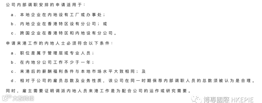 须已确实获得香港本地公司聘用,从事的工作须与其学历或工作经验有关,且不能轻易是本地人能够担任的职位